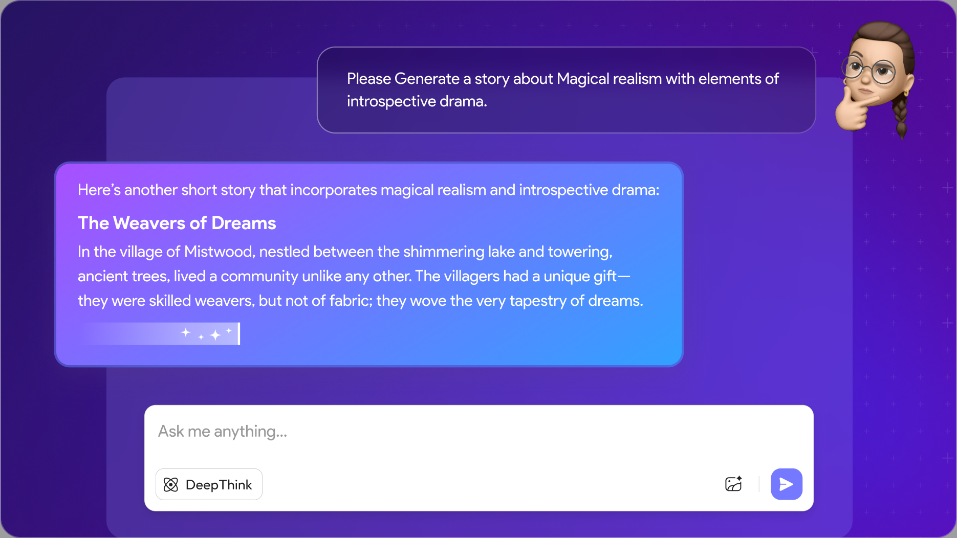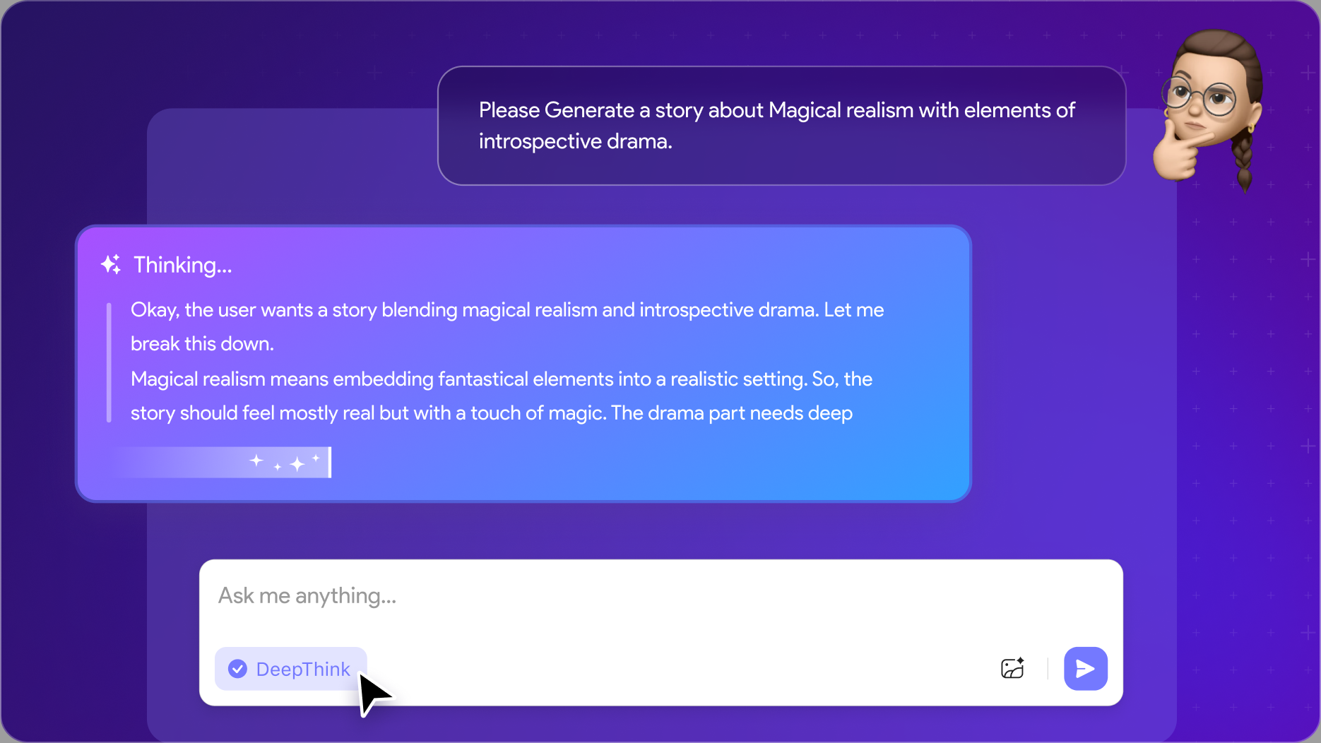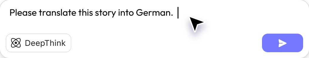 Visit the UPDF AI Story Generator, click the “DeepThink” icon to activate the DeepSeek model, enter your prompt with story idea, genre, characters, and more, then hit “Send” to generate your story.
